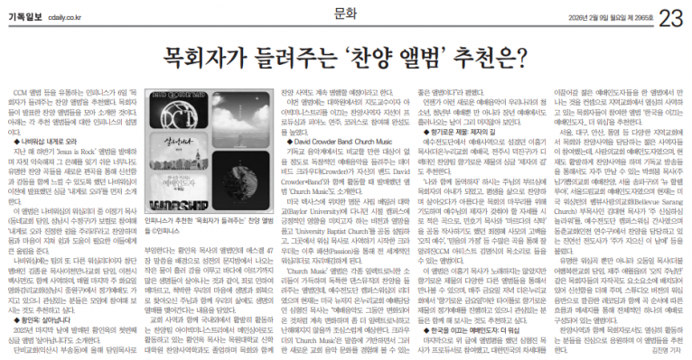 [기획기사] 목회자가 들려주는 찬양 앨범 추천(기독일보)